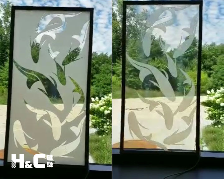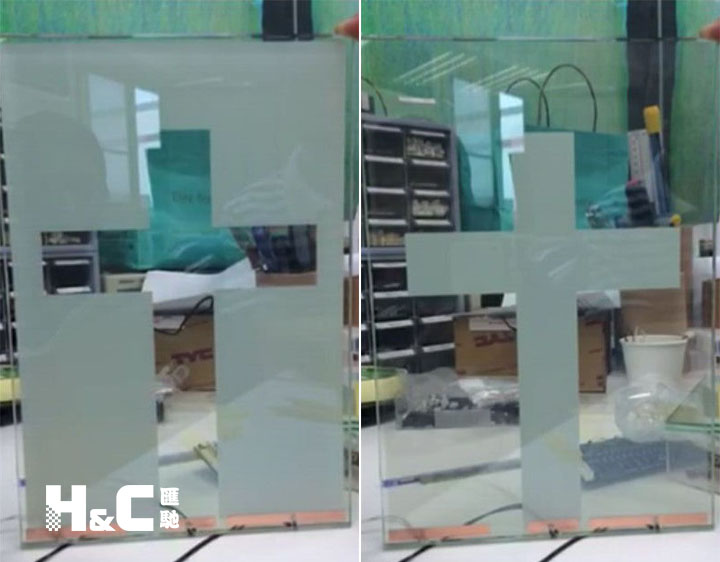 一按开关,玻璃透明;再按开关,玻璃雾化。这是调光玻璃的小样品演示效果。很多朋友刚拿到它,感觉特别神奇有趣。可是好像也不怎么好玩呀?别急,更好玩的还在后面。